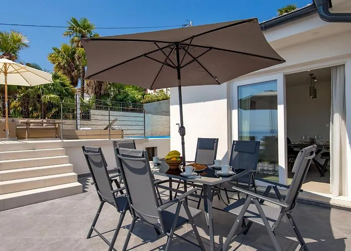 Táto vila se nachází 3 km od centra města Opatija a nabízí ubytování poblíž Church of St. Ana. V 5 minutách jízdy autem se hosté dostanou do Chorvatský chodník slávy. Hosté si mohou vychutnat pokrmy evropské kuchyně v Konoba ribarnica Volosko, umístěné ve vzdálenosti 200 metrů. Ičići Beach se nachází v sousedství vily.